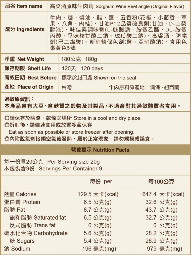 採兩天放牧兩天圍牧的畜牧法,讓牛隻獲得均衡的營養,也更健康,讓肉質更有彈性,油花更均勻。 ★採用金門高梁牛肉製作。 ★自然-嚴選天然原料,保留營養及美味。 ★健康-健康概念研發產品,享受美食、減低負擔。 ★品質-最專業的品質控管。